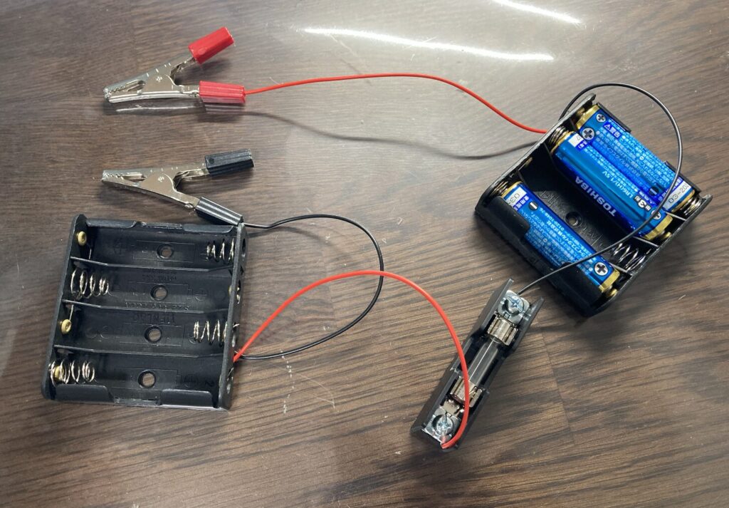 今回は自作ツールを使用しますが、プラス部分(赤)にプラス端子を、マイナス部分にマイナス端子を接続すればOK。
