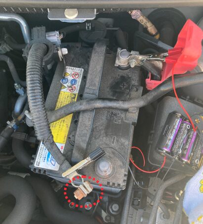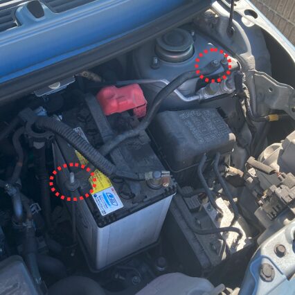 バッテリーを取り外す際はマイナス→プラスの順に取り外します。これはなるべく安全に、ショートによる事故を防ぐためですね。
